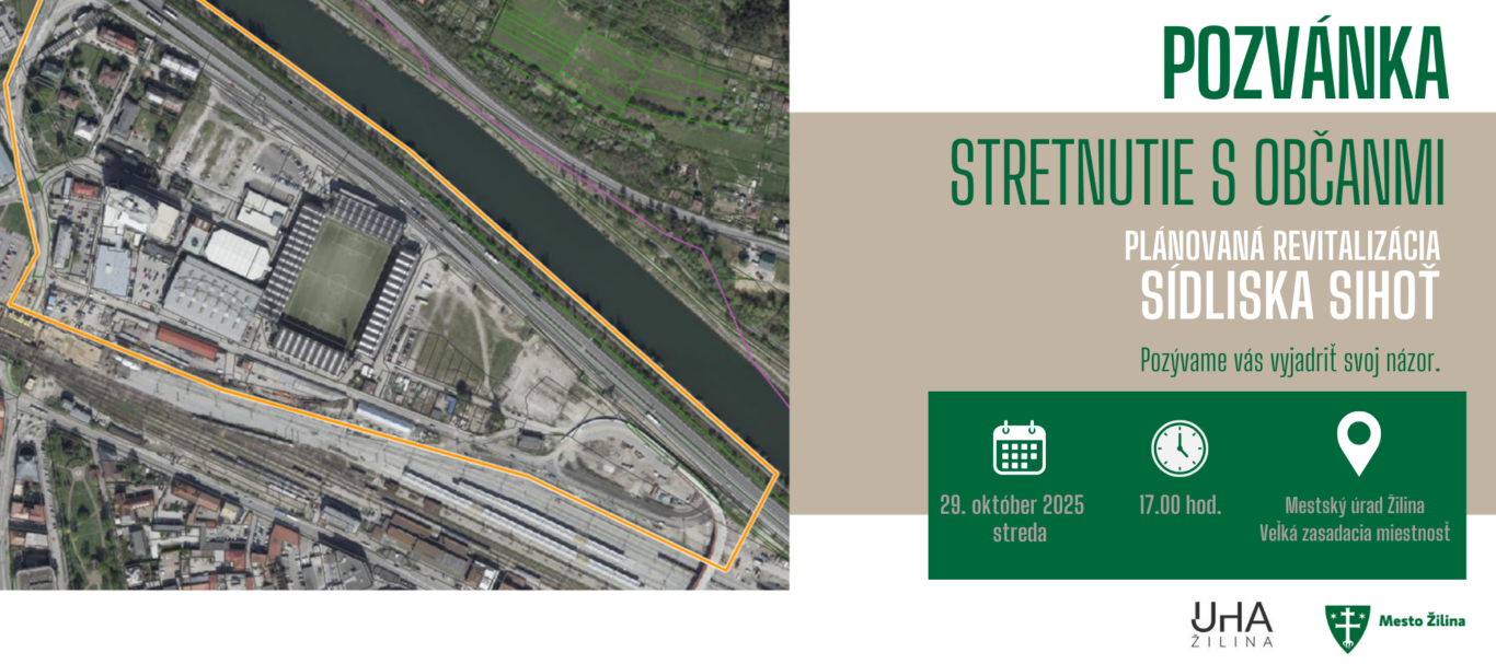 Mesto Žilina pozýva občanov na stretnutie k plánovanej revitalizácii sídliska Sihoť, ktoré sa uskutoční v stredu 29. októbra 2025 o 17.00 hod. vo veľkej zasadacej miestnosti Mestského úradu v Žiline, Námestie obetí komunizmu 1.